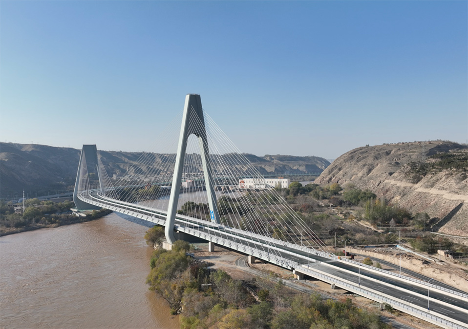 由中國二冶承建的蘭州柴家峽黃河大橋,是目前國內(nèi)曲率半徑最小跨度最大的“S”型曲線雙塔跨黃河斜拉橋。該橋為“A”字型高低塔斜拉索鋼箱梁橋結(jié)構(gòu),橋長1250米,共設(shè)置56對平行鋼絲斜拉索。大橋構(gòu)筑了蘭州東西向貫穿城市的核心綠脈,對帶動城區(qū)經(jīng)濟(jì)和城市向外拓展具有十分重要的使命,同時也為“絲綢之路”經(jīng)濟(jì)帶建設(shè)提供重要支點。