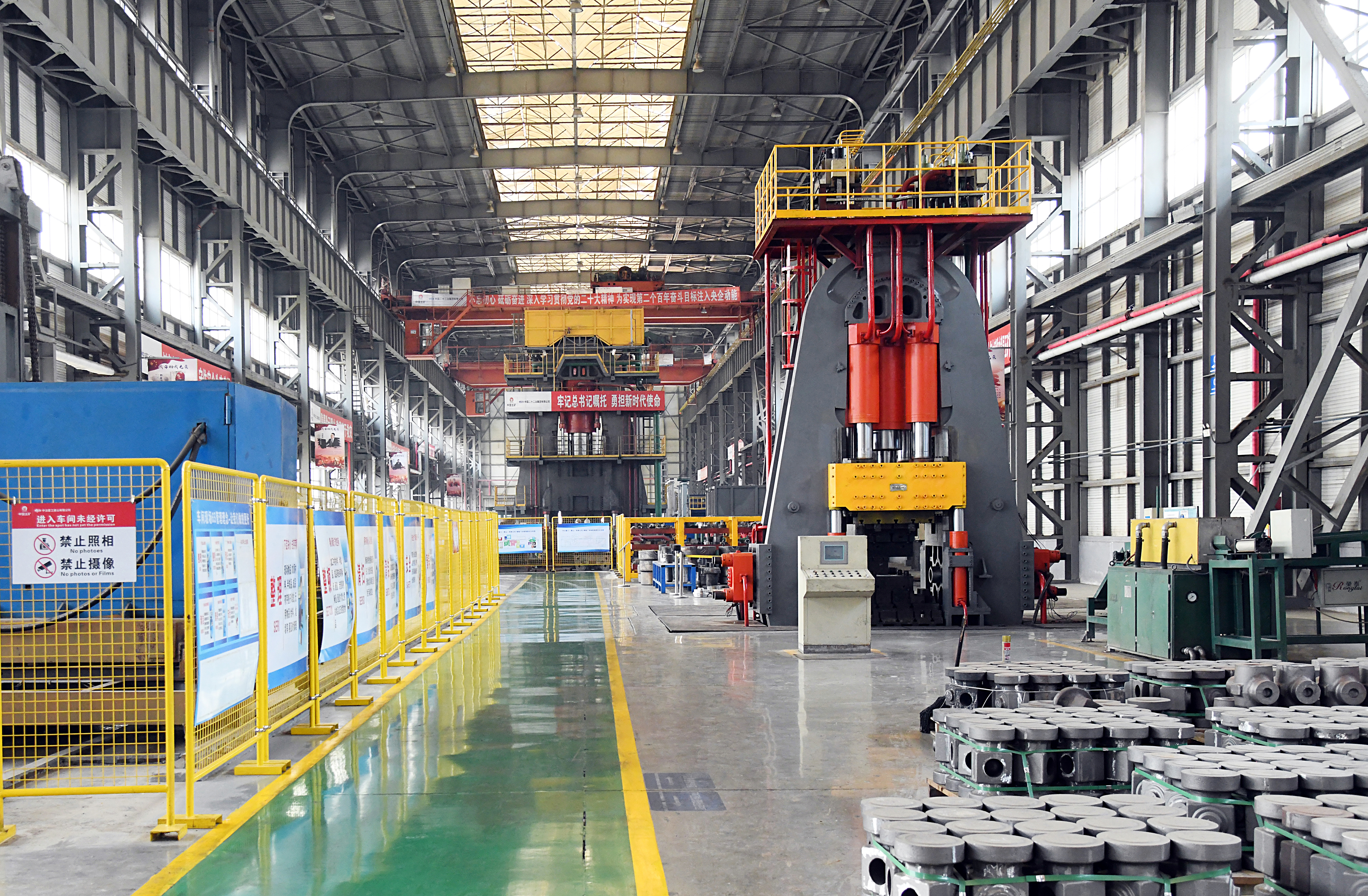 由中國二十二冶生產(chǎn)的重型壓機(jī)及產(chǎn)線擁有預(yù)應(yīng)力鋼絲纏繞、特重型設(shè)備原位安裝、厚板焊接等核心技術(shù),產(chǎn)品涵蓋(多向)模鍛液壓機(jī)、板片成型液壓機(jī)、換熱片壓機(jī)、海綿鈦壓機(jī)、特色中小型壓機(jī)等工藝生產(chǎn)線及配套設(shè)備。產(chǎn)品榮獲國家科學(xué)技術(shù)進(jìn)步獎、國家優(yōu)質(zhì)工程獎、冶金科學(xué)技術(shù)獎、魯班獎等多項榮譽(yù)。